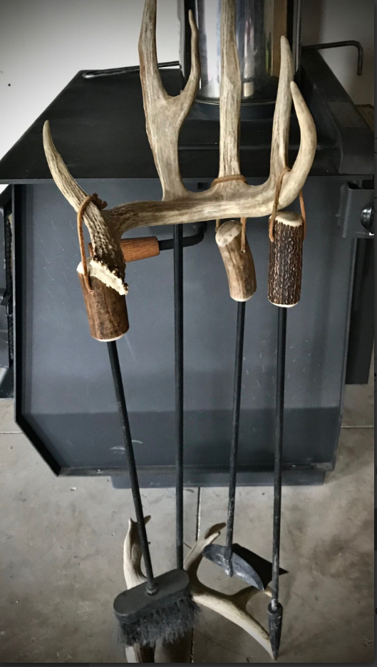 The Antler Fireplace Tool Set will add immensely to your rustic decor and goes great with your antler chandelier lighting. The tool sets made by our Antler Artisans are all a little different and unique due to the use of real deer antler sheds, so no two will be exactly alike.
