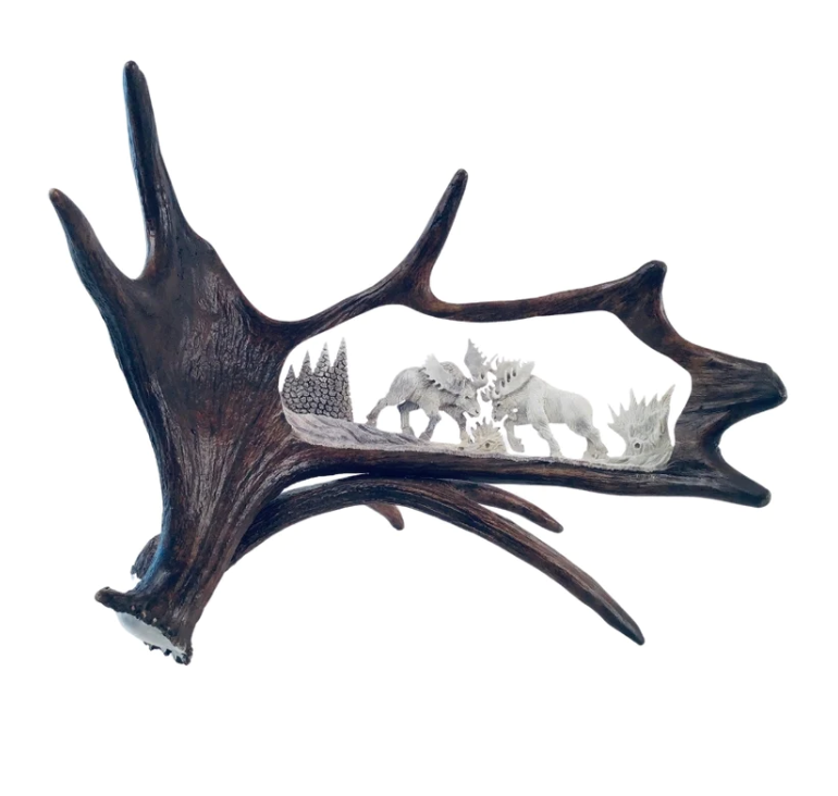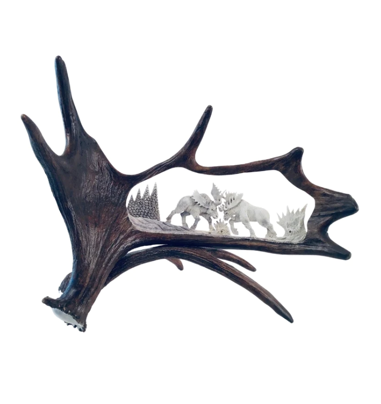 Each carving is individually hand carved by a senior professional antler carving artisan who has decades of experience. The artists' focus on detail makes every carving incredibly real to life and is what makes each carving a true work of art. Our carving Artisan has decades of watching and learning from her father who himself was a professional antler carver for many years.