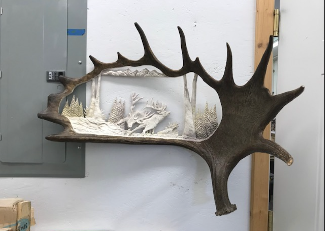 Next, a lot of time and effort goes into each and every antler carving, which is seen in all of the minute details that goes almost unnoticed by the untrained eye, unless you really look for it. Each piece of antler art is crafted one step at a time and created by the work of a true artist’s hand- that is how it becomes a unique, one of a kind, work of art. Each carving is individually hand carved by a senior professional antler carving artisan who has decades of experience. The artists' focus on detail makes every carving incredibly real to life and is what makes each carving a true work of art. Our carving Artisan has decades of watching and learning from her father who himself was a professional antler carver for many years. Since then she has put in years and years on her carving trade, professionally adjusting her technique and tools to accomplish the professional works of art that she is proud of having displayed in your home, office or cabin.