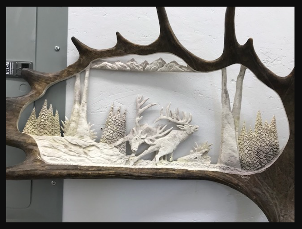 First, we only use Grade A antlers, which are the best looking and highest quality naturally shed deer, elk or moose antlers that can be found. They are also the most expensive antlers to buy and use for carvings, but you get what you pay for. We do not use antlers below Grade A, ever. Next, our professional antler master carver is the best in the antler carving industry found anywhere in the United States and has been doing the trade for decade’s, full time professionally. She knows what she is doing and how to do it to ensure that you will get the best looking, highest quality antler carving on the market for your money.