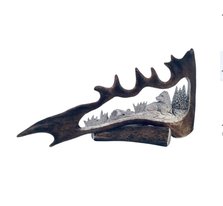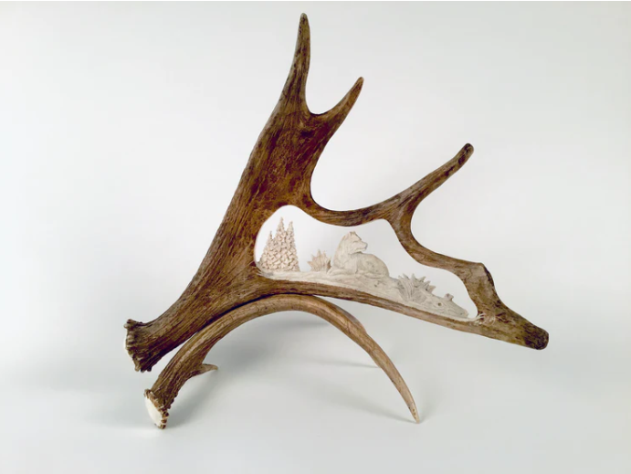 Our carving Artisan has decades of watching and learning from her father who himself was a professional antler carver for many years.