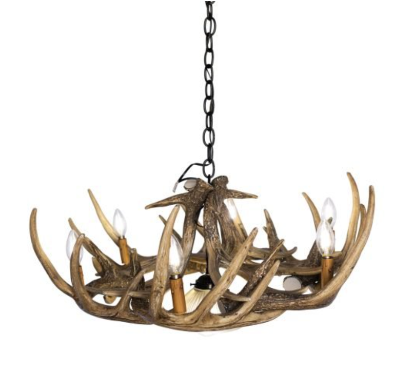 It's a perfect fit for those smaller, tighter areas that need a little extra style and antler lighting. Having six, 25-watt candle lights, this chandelier is perfect for those smaller homes, cabins, or rooms.
