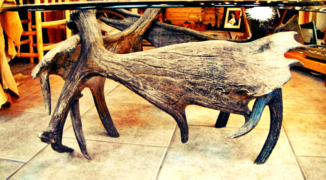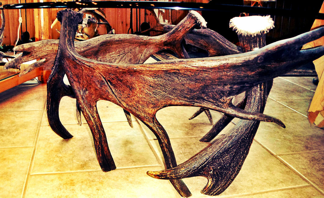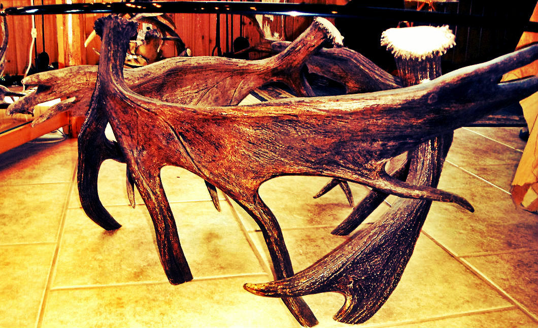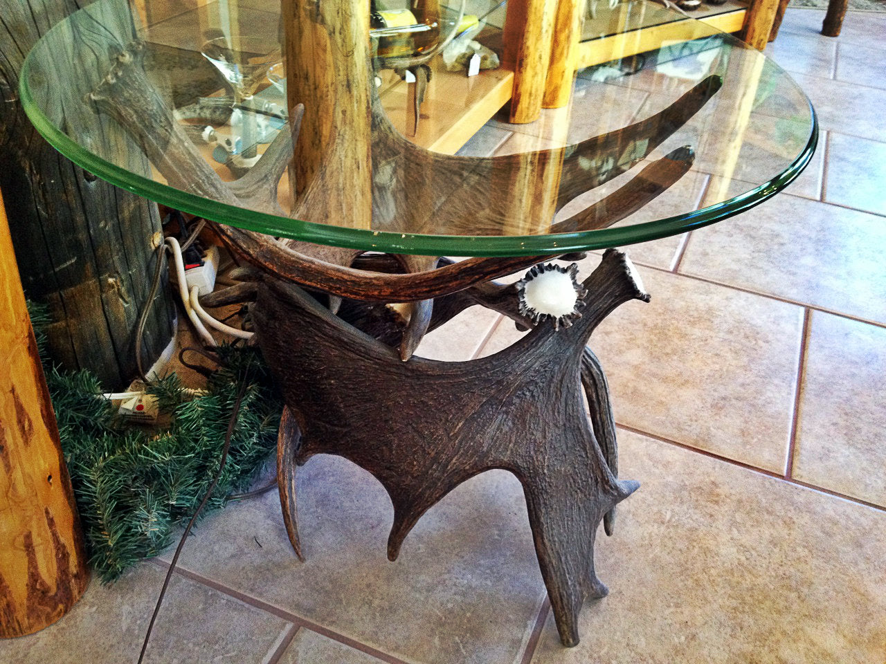 The moose antlers used to hand-craft this great looking end table are from naturally shed moose antlers and no animals were hurt.