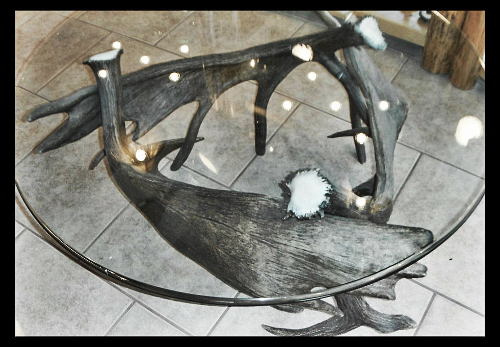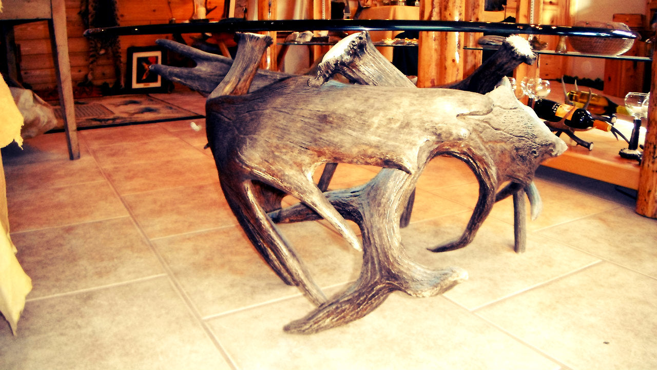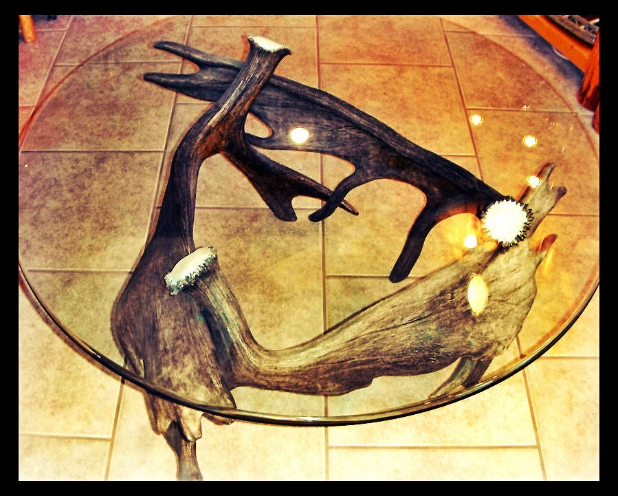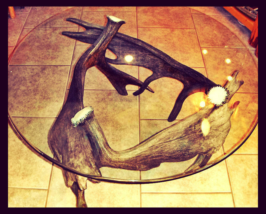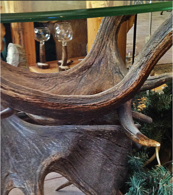 The moose antlers used to hand-craft this great looking end table are from naturally shed moose antlers and no animals were hurt.