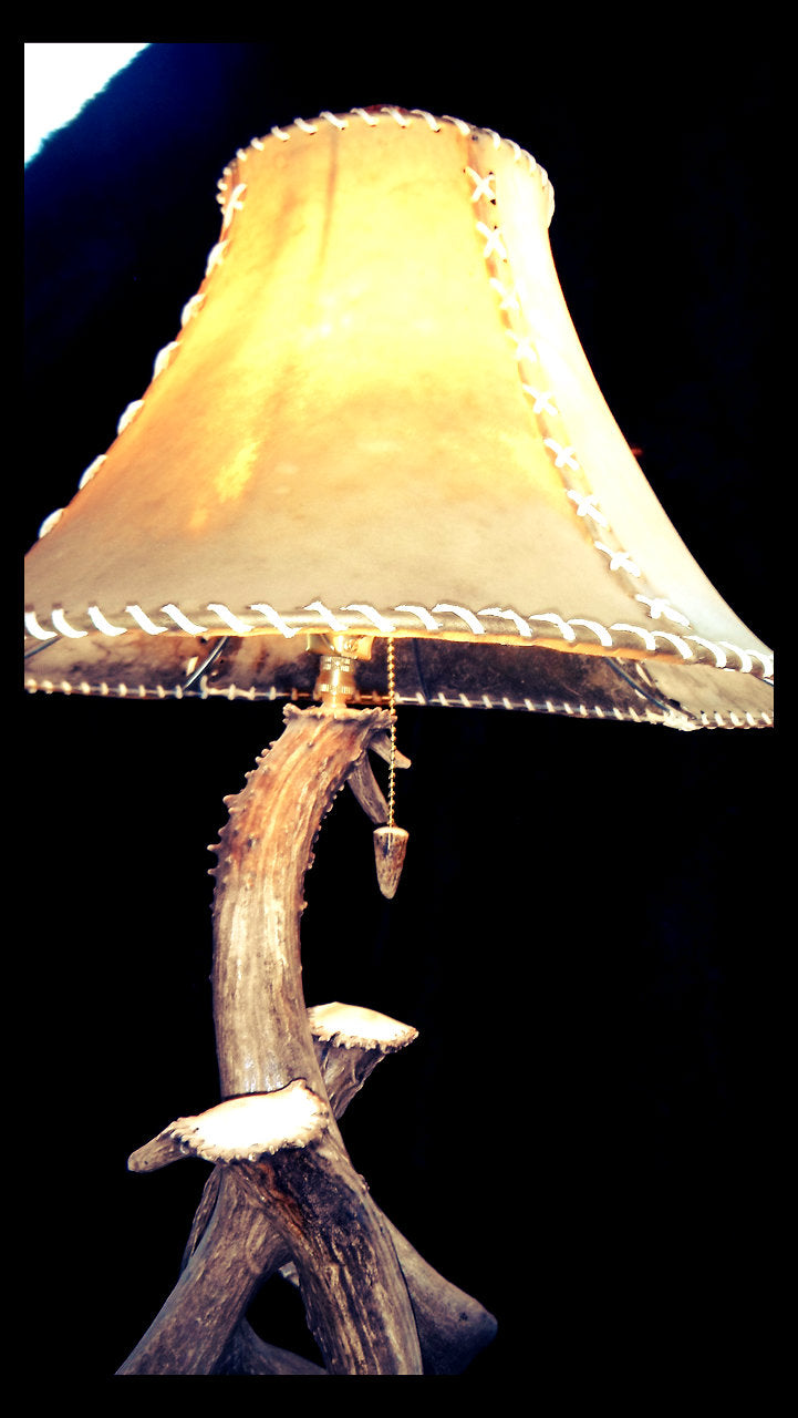 The rawhide shade on our table lamp will set this antler lamp apart from any other lamp you may look at, anywhere! All our rawhide shades are made individually and are hand-rubbed until the leather is shaped into a wonderful looking lamp shade.