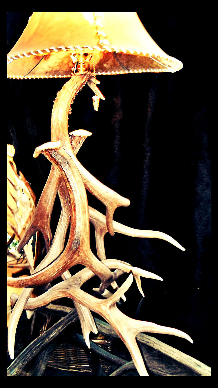 This stylish looking table lamp uses 4 deer antler sheds to create a table lamp that will be seen and admired immediately by your guests and friends!