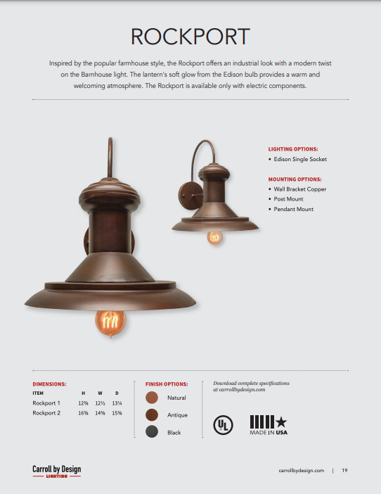 Inspired by the popular farmhouse style, the Rockport offers an industrial look with a modern twist on the Barnhouse light. The lantern's soft glow from the Edison bulb provides a warm and welcoming atmosphere. The Rockport is available only with 1 Edison Bulb.
