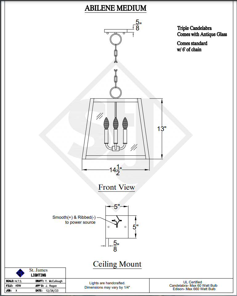 All of our St. James Lights are HANDCRAFTED for excellence with NO assembly line production- which takes time. If you are looking for the BEST, you have just found it!