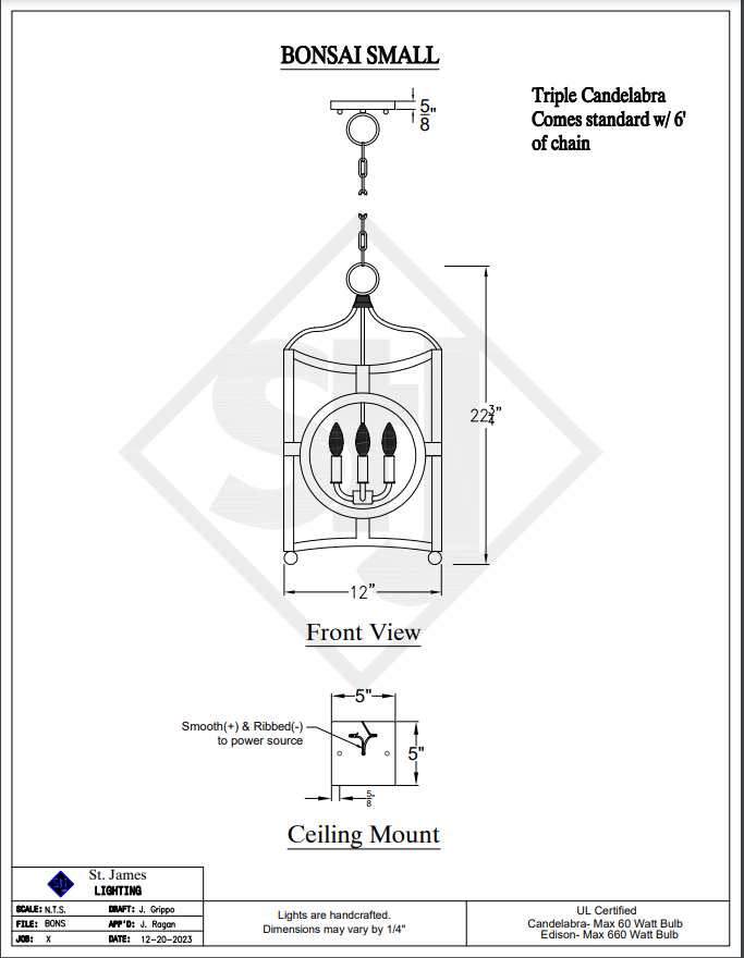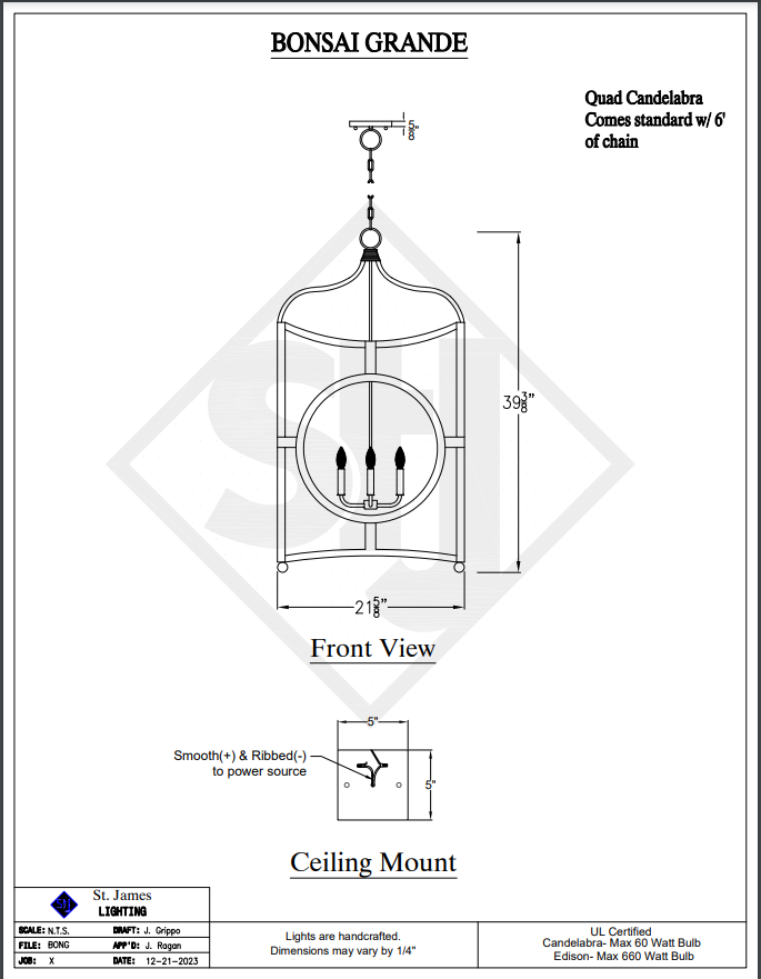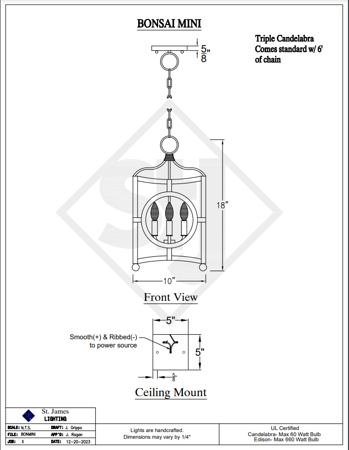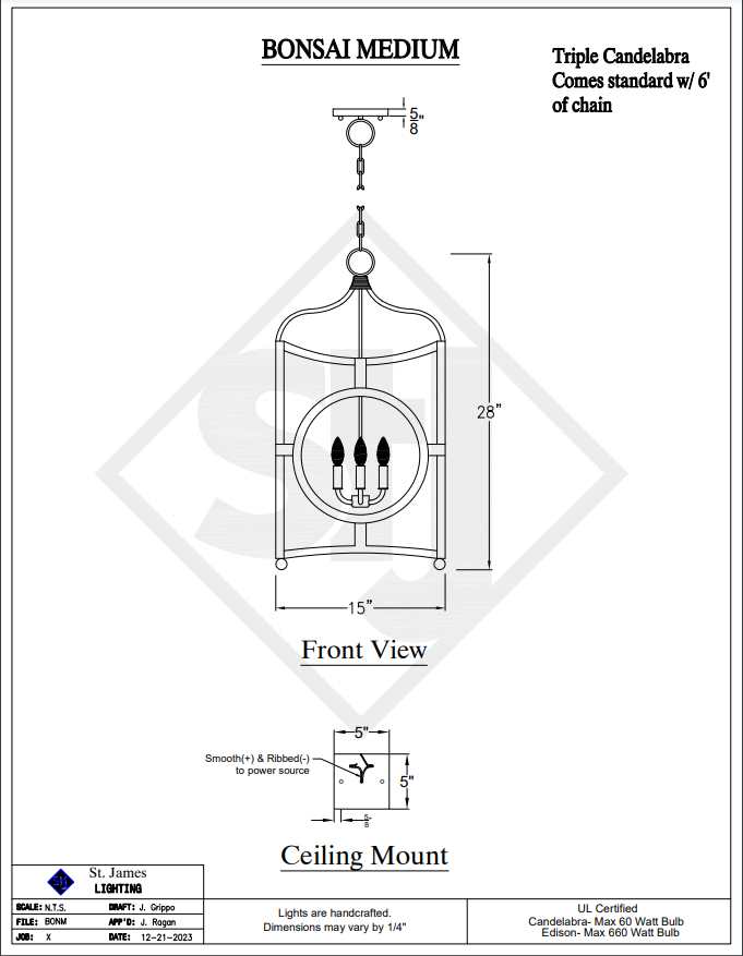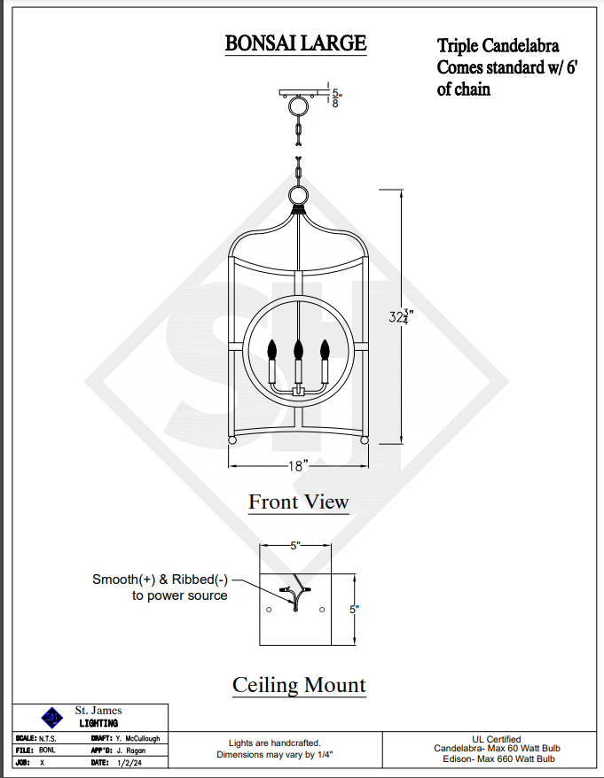 All of our St. James Lights are HANDCRAFTED for excellence with NO assembly line production- which takes time. If you are looking for the BEST, you have just found it!
