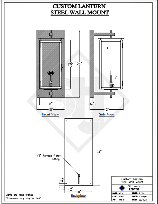 All of our St. James Lights are HANDCRAFTED for excellence with NO assembly line production- which takes time. If you are looking for the BEST, you have just found it!