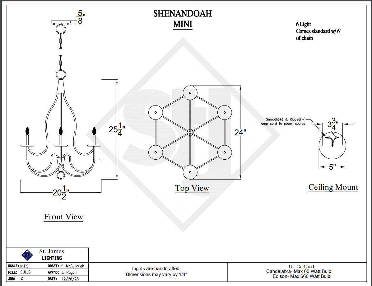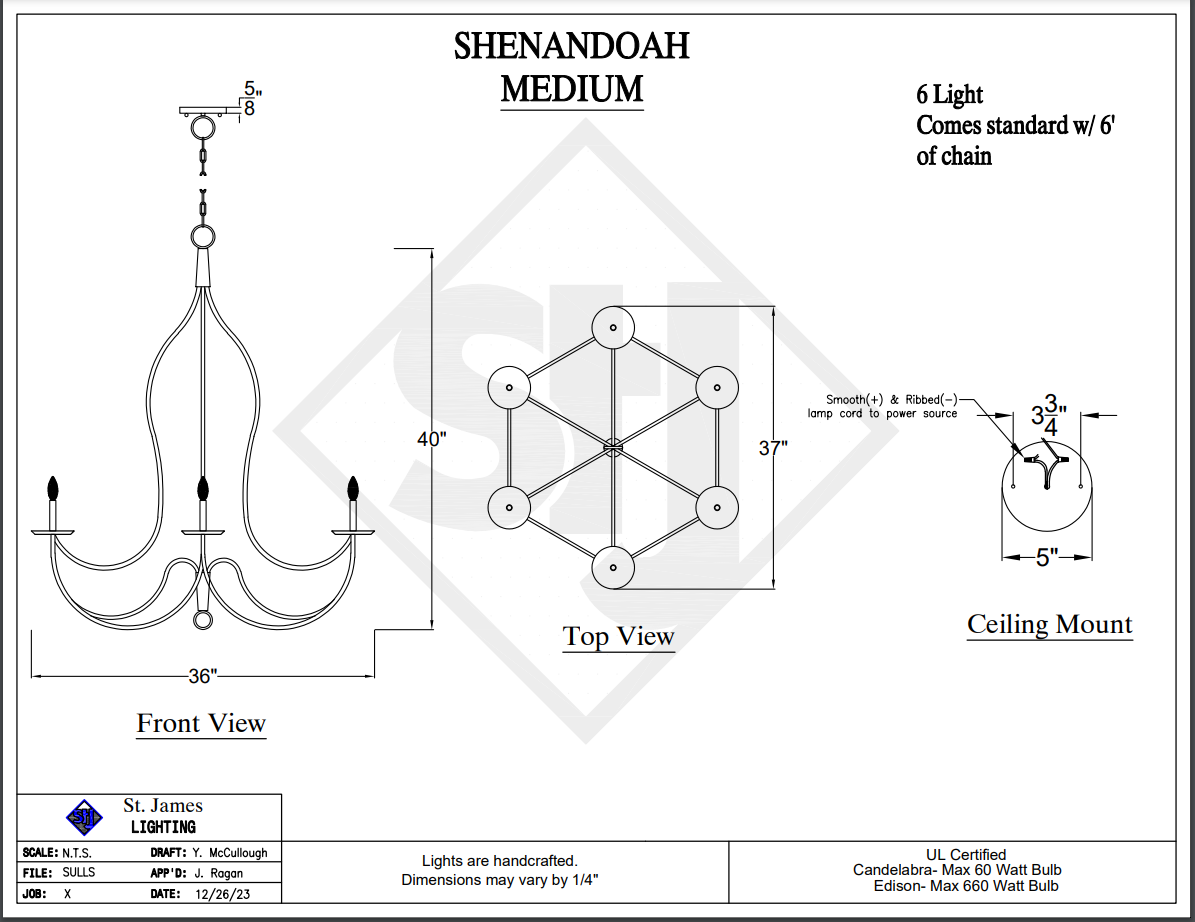 All of our St. James Lights are HANDCRAFTED for excellence with NO assembly line production- which takes time. If you are looking for the BEST, you have just found it!