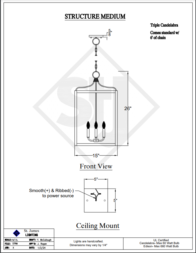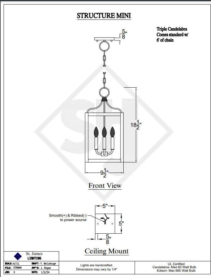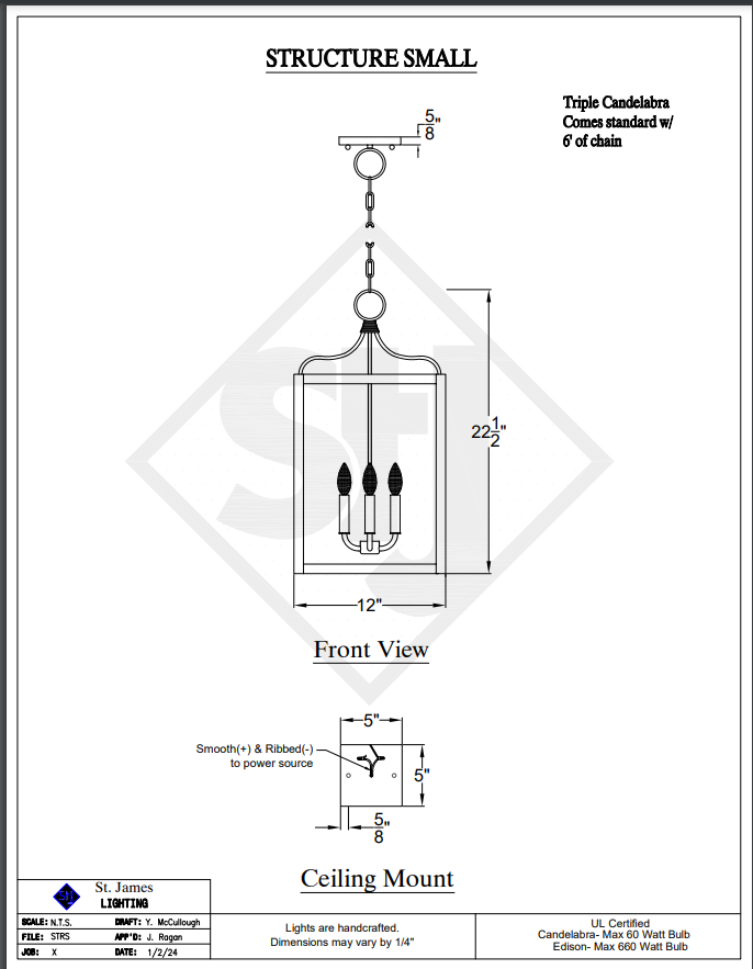 All of our St. James Lights are HANDCRAFTED for excellence with NO assembly line production- which takes time. If you are looking for the BEST, you have just found it!