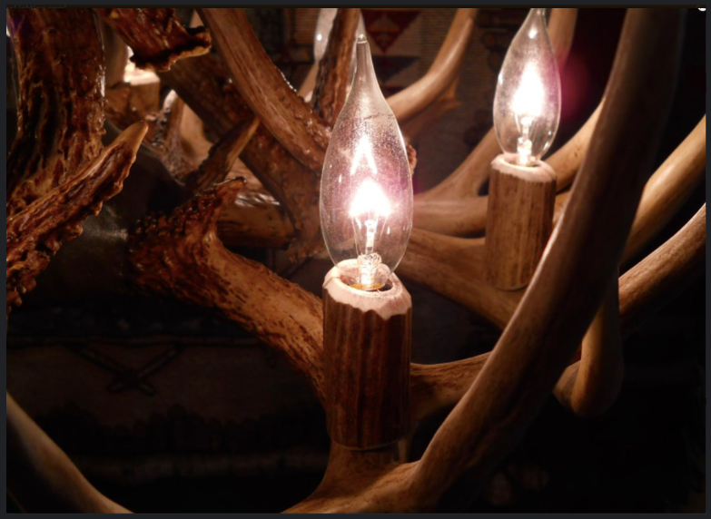 Second, all the beautiful candelabra antler light sockets (notice the pictures we include) we use are individually hand-crafted, shaped and styled to fit on the antler exactly where the craftsman feels the lights are needed most to create the very best lighting effect. Hand-crafting all the candelabra light sockets requires an amazing amount of time and very hard effort.