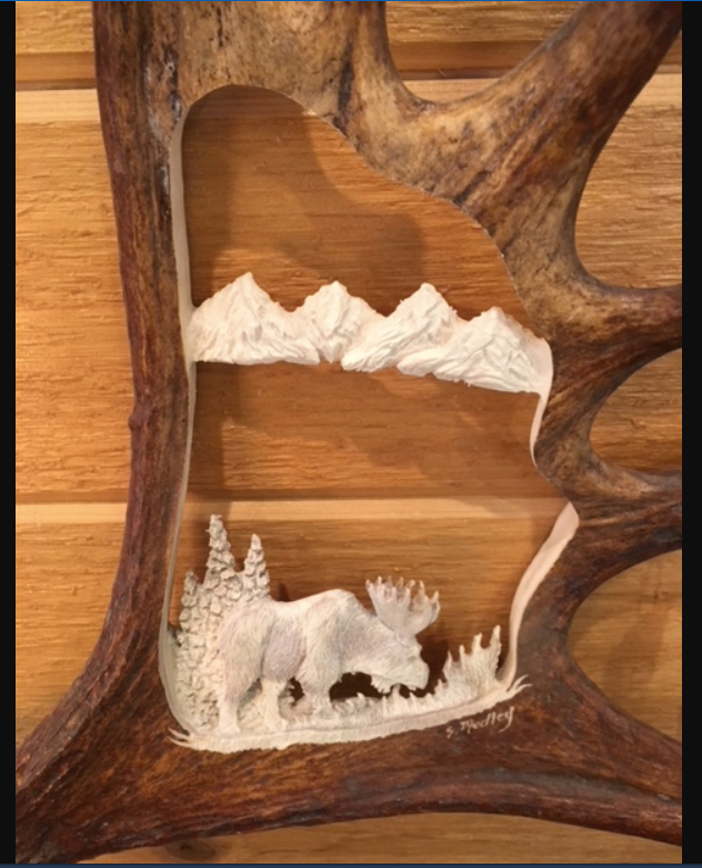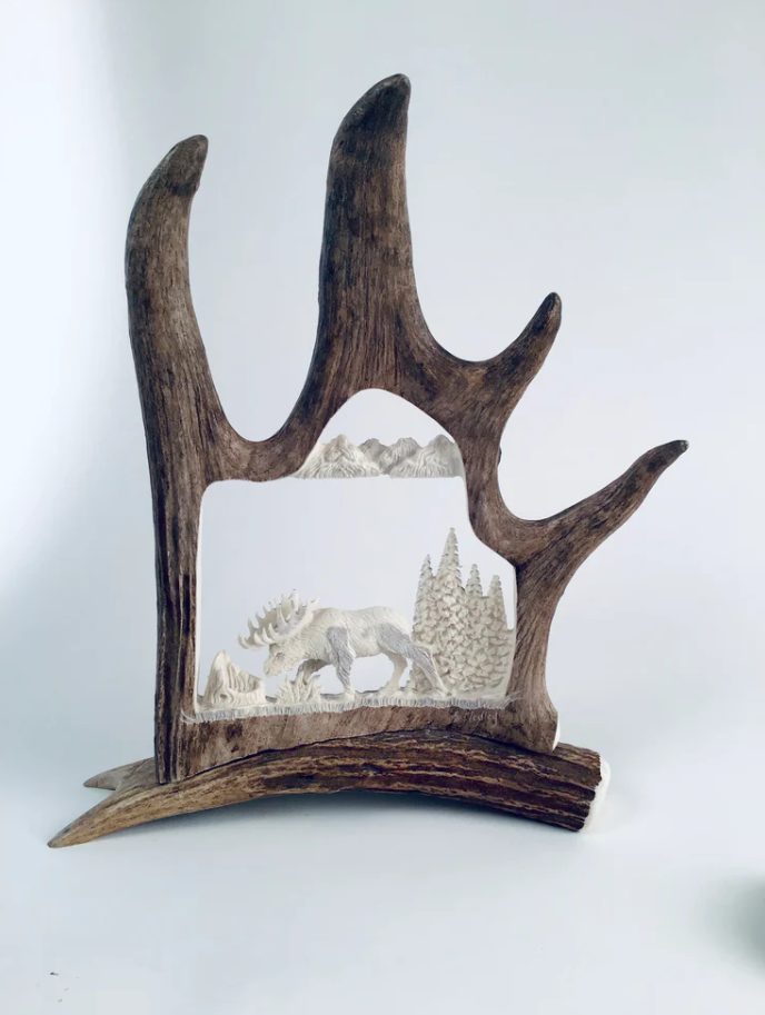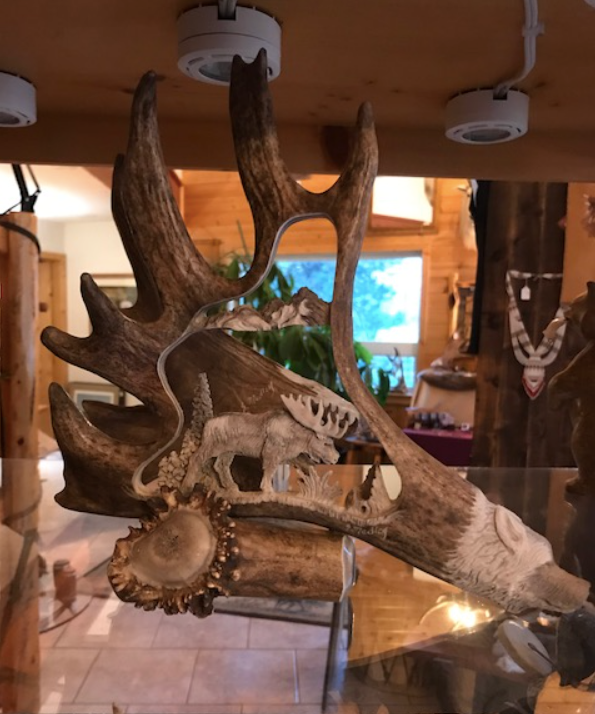Our carving Artisan has decades of watching and learning from her father who himself was a professional antler carver for many years.
