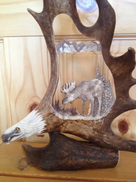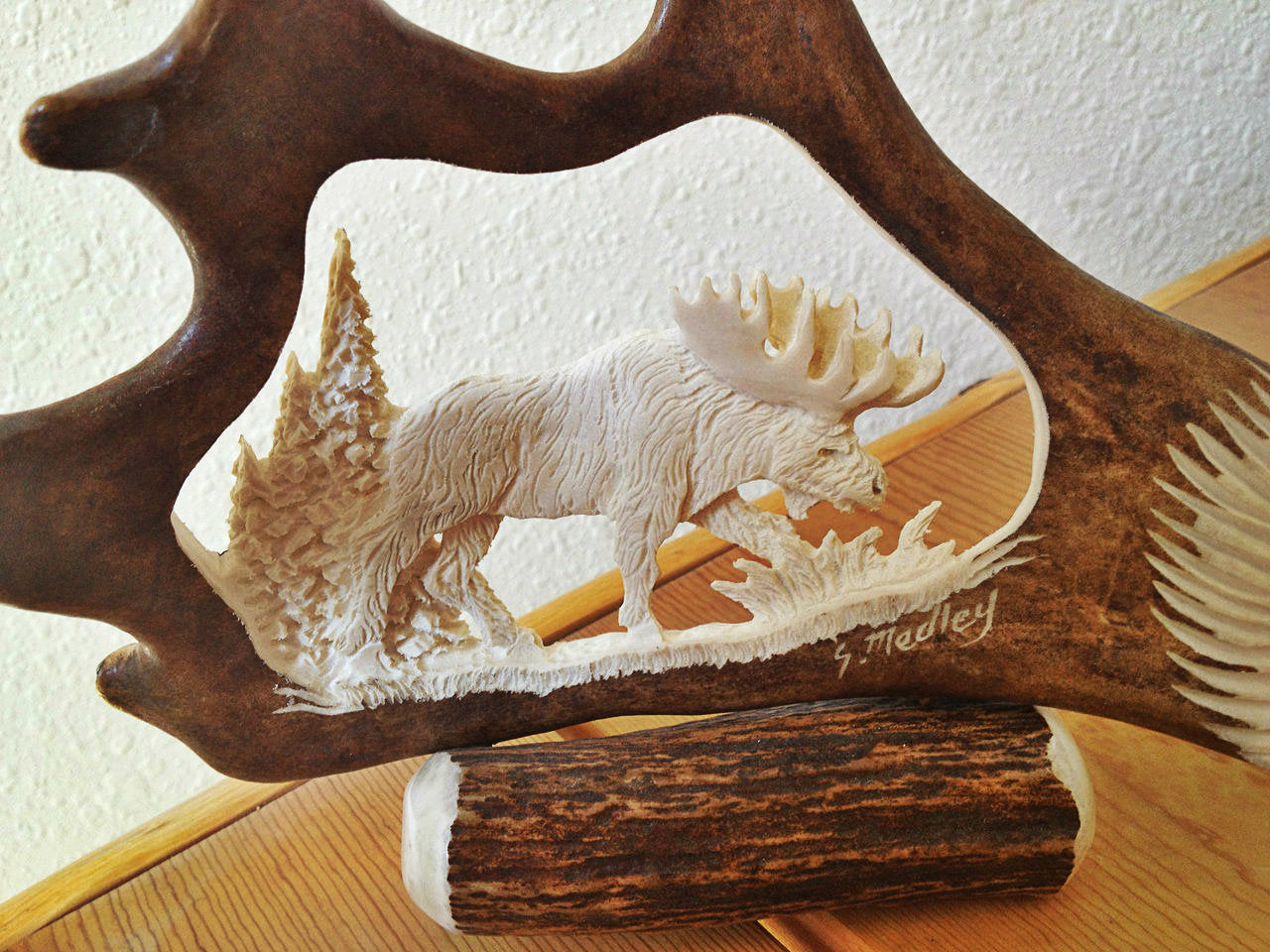 Please check out our other beautiful moose antler carvings as well as other moose antler art- we have and moose antler chandeliers, moose antler lamps, elk antler art, elk antler chandeliers and elk antler lamps.