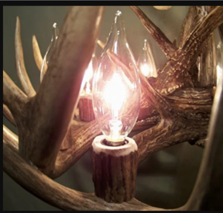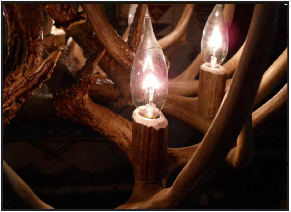 Second, all the beautiful candelabra antler light sockets (notice the pictures we include) we use are individually hand-crafted, shaped and styled to fit on the antler exactly where the craftsman feels the lights are needed most to create the very best lighting effect. Hand-crafting all the candelabra light sockets requires an amazing amount of time and very hard effort.